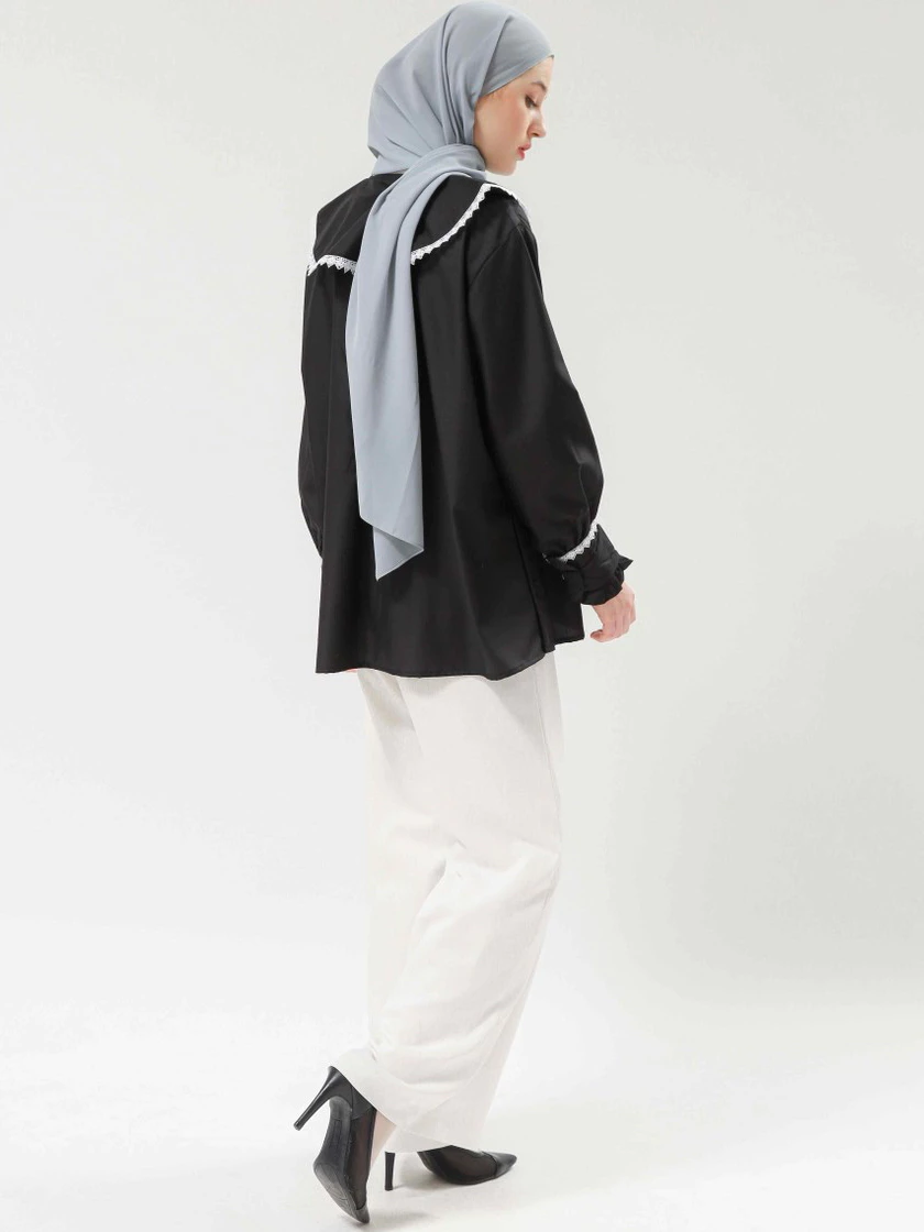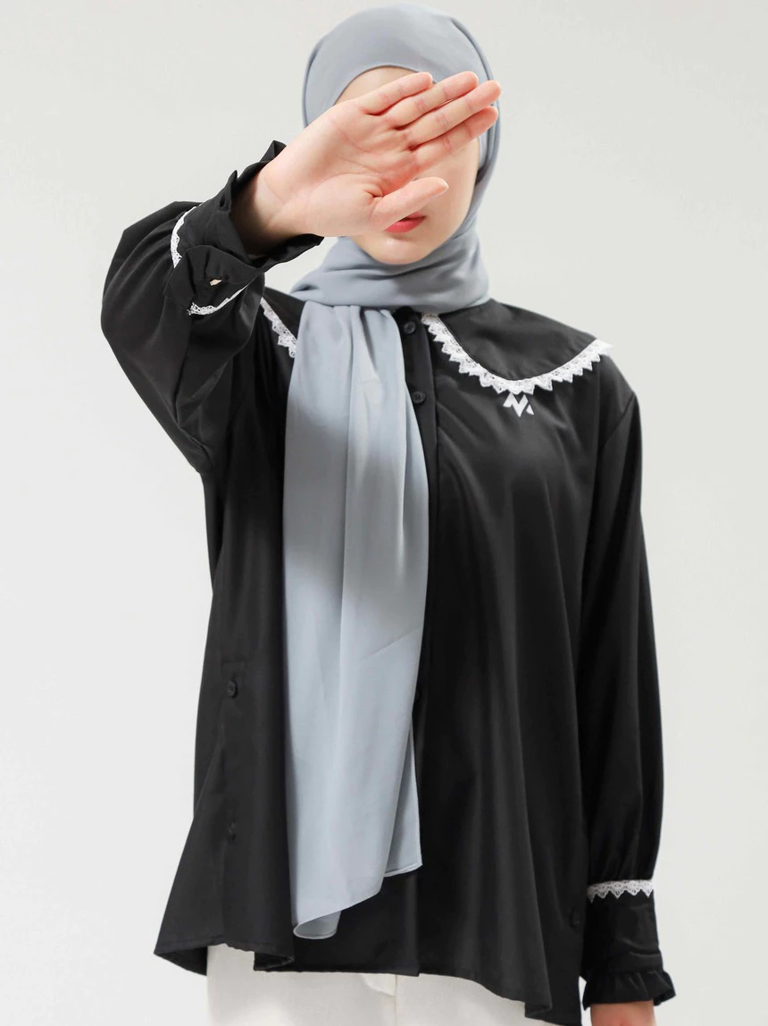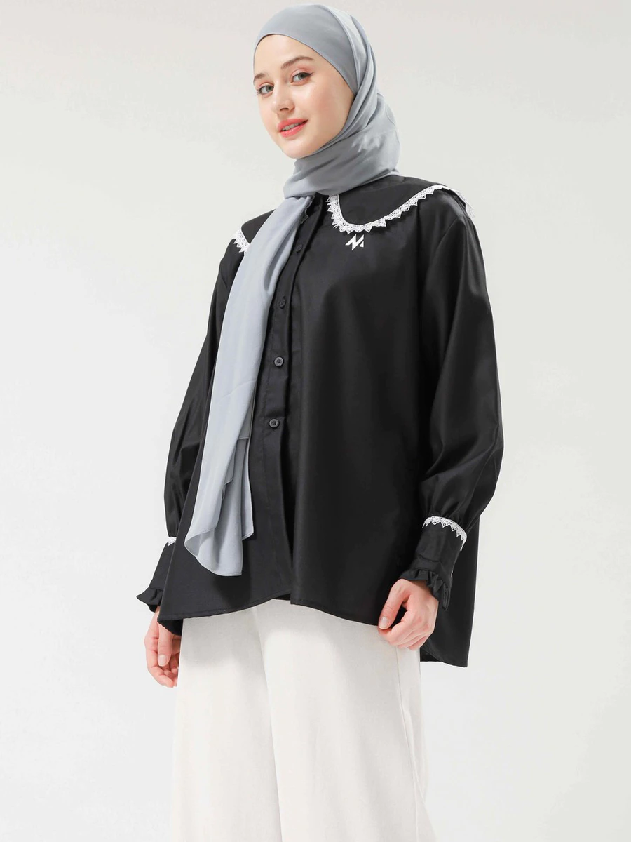 Kemeja vintage dengan ruffle manis yang cocok untuk berbagai acara.